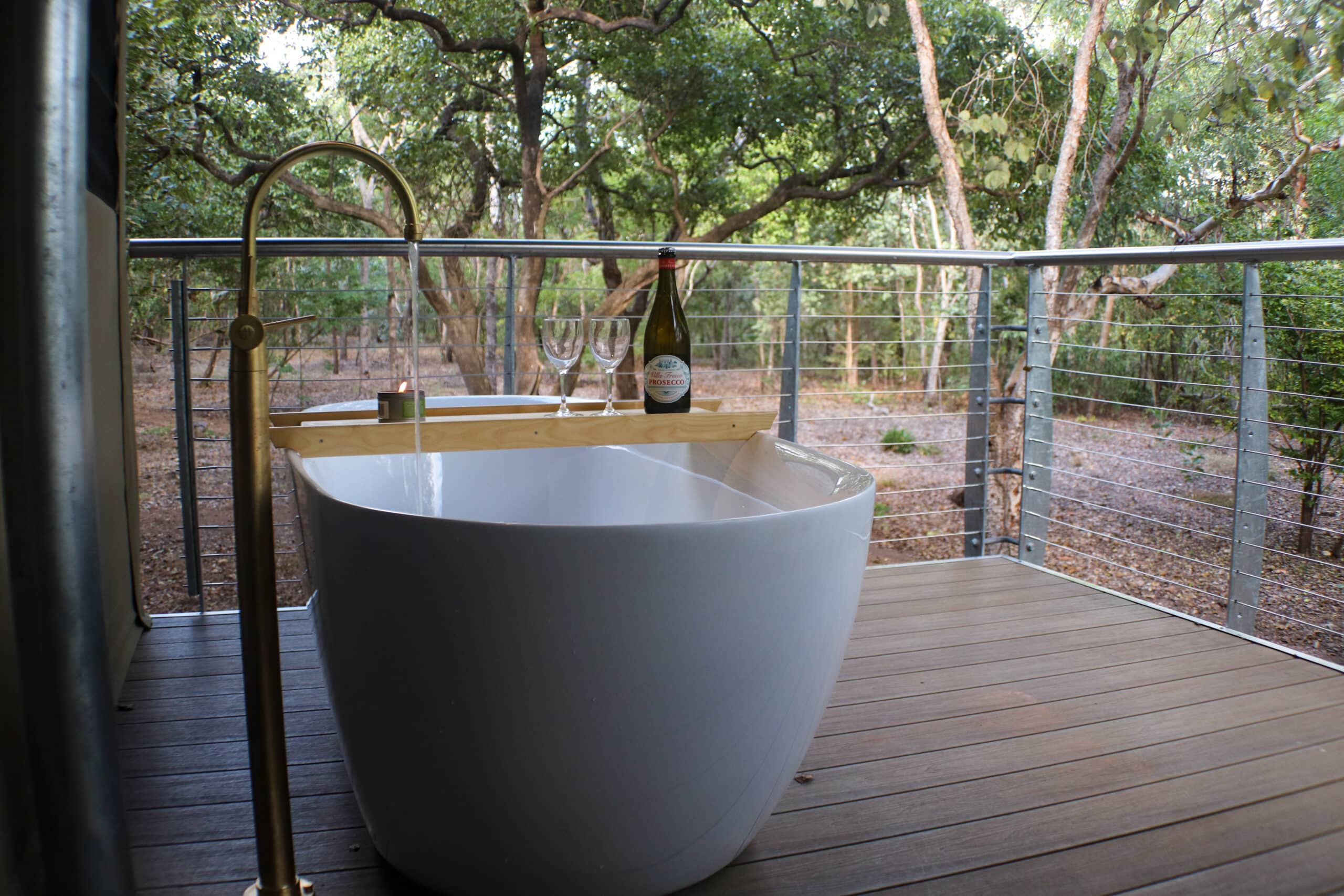 Experience Kakadu’s wetlands from the comfort of Cooinda Eco Tent, anchored entirely with our low-impact Eco Anchor system to protect the land. Each spacious bespoke tents carries composite decking and luxury vinyl floors deliver contemporary furnishing style and an ensuite, while high-performance insulation and solar-ready wiring ensure climate-controlled luxury in the Top End. Outside, your private deck overlooks pristine wetlands.