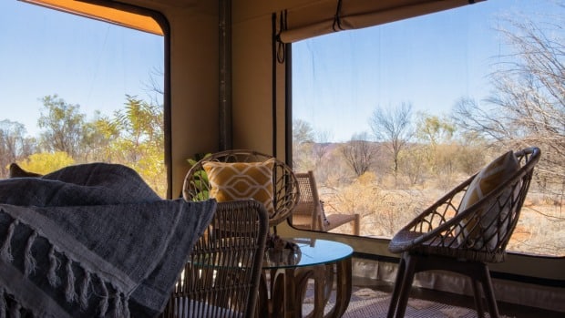Perched on the edge of Australia’s iconic gorge, bespoke Eco Tent at Kings Canyon Resort offers breathtaking canyon vistas with minimal environmental impact. Anchored using no concrete Eco Anchor system, this luxury sanctuary features composite decking and vinyl floors for modern comfort. Inside, high-performance insulation and solar-ready wiring deliver year-round comfort, while your private deck invites you to rejuvenate under the golden sunrise.